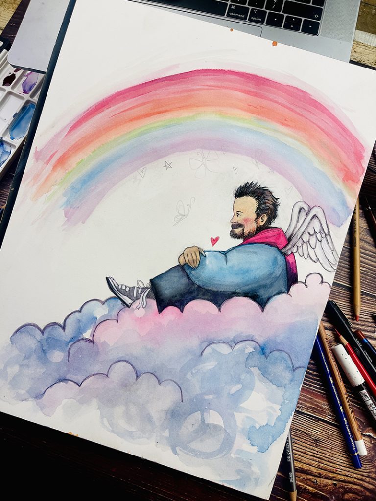 For this live session, I started a little illustration to celebrate the late Matthew Perry whom I adored. He brought great joy to my life in some of the difficult times I’ve been through. I don’t usually do dedications to celebrities, but I really wanted to paint something in honour of Chandler Bing. Such and icon. I’m so sad he’s gone. I imagine him content somewhere happy in the sky. ♥️♥️♥️