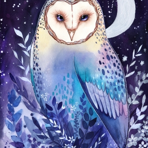 Create a luminous owl beneath moonlight, indigos glowing, revealing quiet inner wisdom!