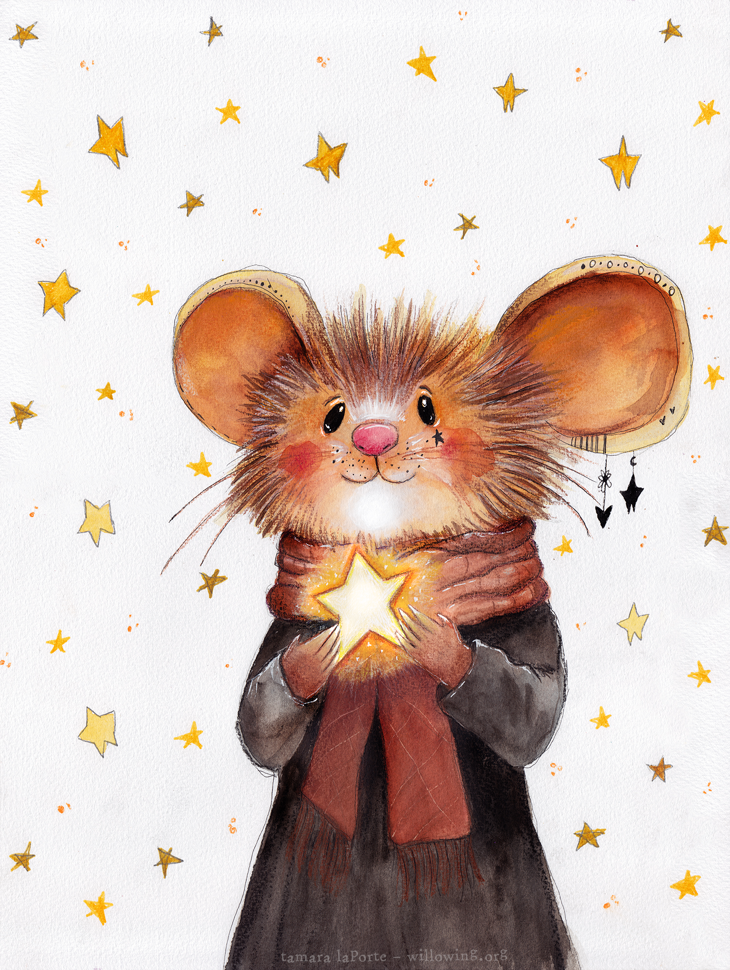 - Bonus Lesson: Star Touched. We’ll bring to life a charming, whimsical mouse holding a radiant, glowing star. With its oversized ears, soft fur, and endearing expression, this little creature embodies wonder and innocence. Surrounded by a sprinkle of golden stars, the scene captures a magical moment of connection to light and hope. Using watercolour and mixed media, we’ll explore how to create the warm, luminous glow of the star and contrast it with the rich, earthy tones of the mouse and its cosy attire. This piece invites us to reflect on how even the smallest lights can illuminate our path, offering clarity, insight, and a sense of purpose amidst the darkness. Let’s celebrate those tiny sparks of understanding that guide and inspire us. ✨🙌