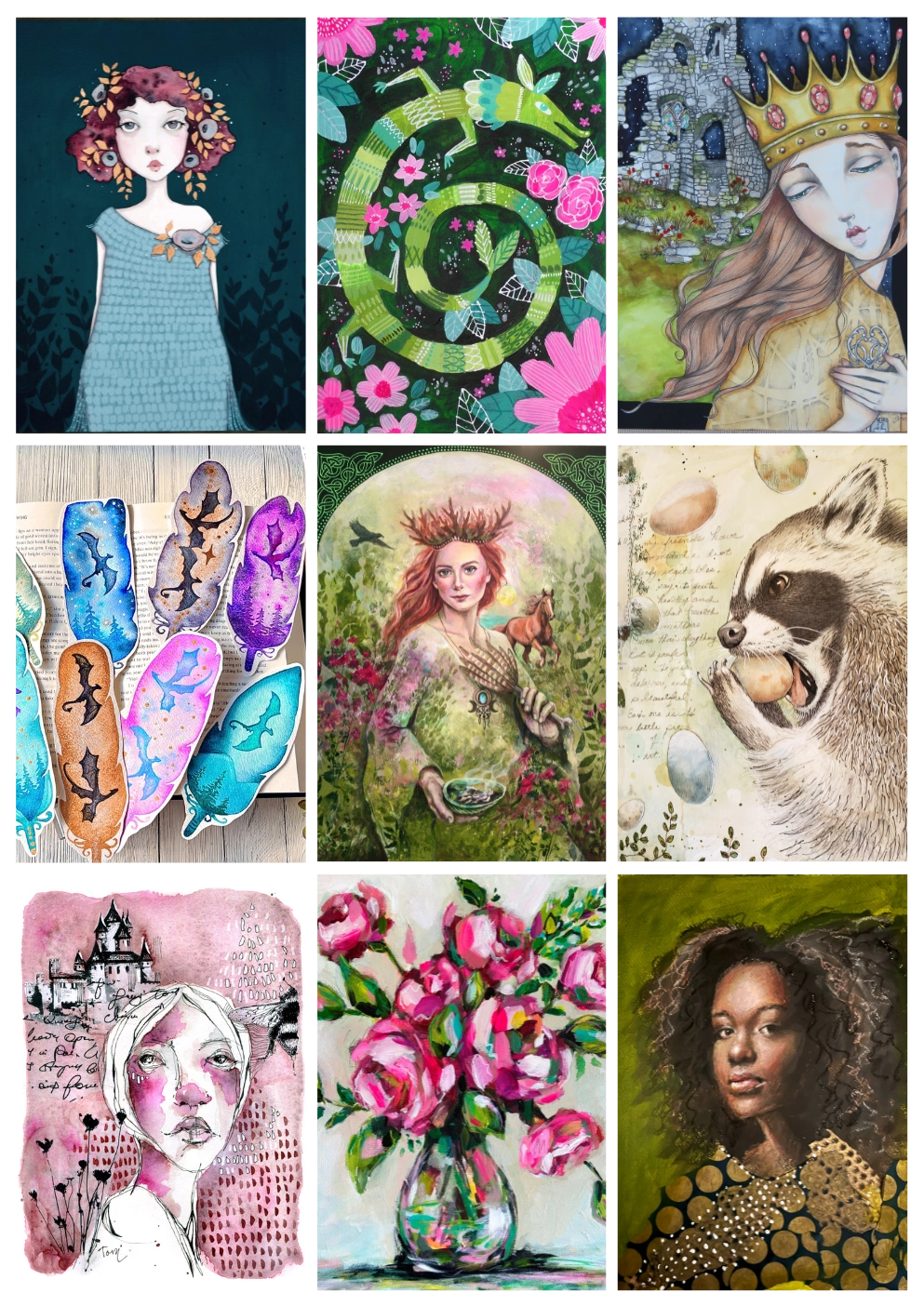 Art by (from left to right): Ida Anderson Lang, Tamara Laporte, Lucy Brydon, Shawn Petite, Katrina Koltes, Marie-Laure Delage Carlson, Danita Art, Andrea Gomoll, Renata Loree.