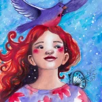 In this lesson, we’ll paint a playful scene of a young girl with a bright smile and a bird perched on her head, symbolising the theme of Guidance and Light Bringers. As we work with mixed media to capture the sunlight and shadows on her face, we’ll reflect on how certain beings, whether people, animals, or even symbols like the North Star, serve as guides, bringing light and joy into our lives. The bird acts as a ‘light bringer’ in this piece, inviting us to consider how animals and companions can illuminate our paths. Through this warm, expressive painting, we’ll celebrate the figures in our lives that offer guidance, love, and light, helping us to find our way.