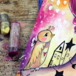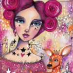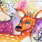 We are going to create a painting that includes a front facing whimsical girl with a deer and bird on a layered background :)