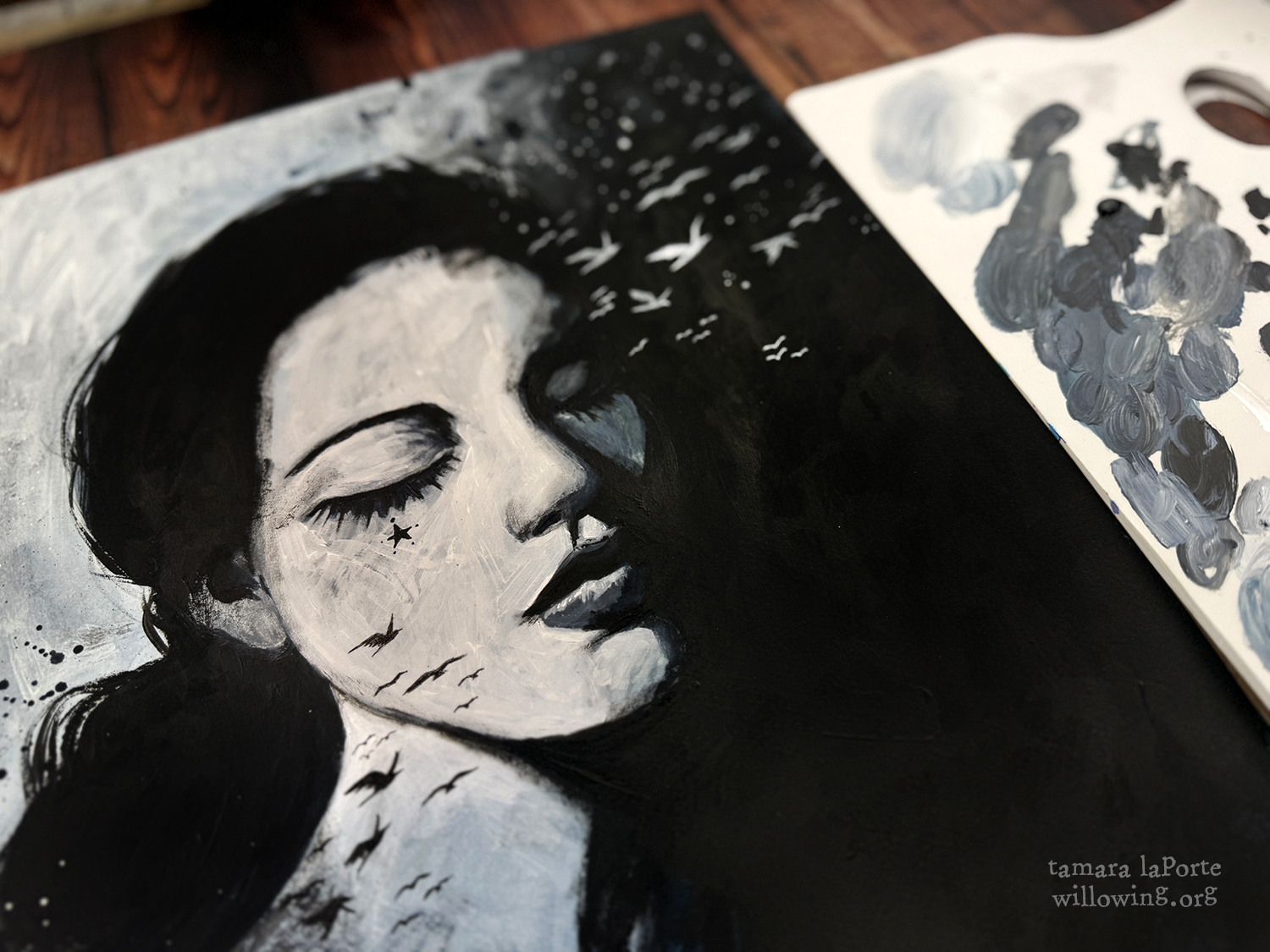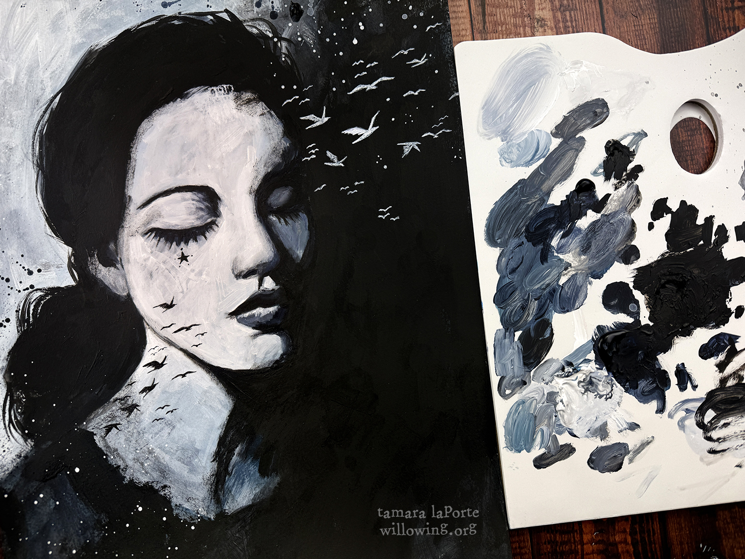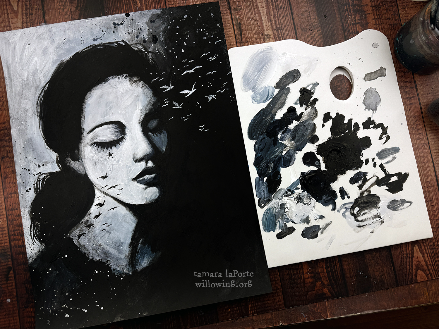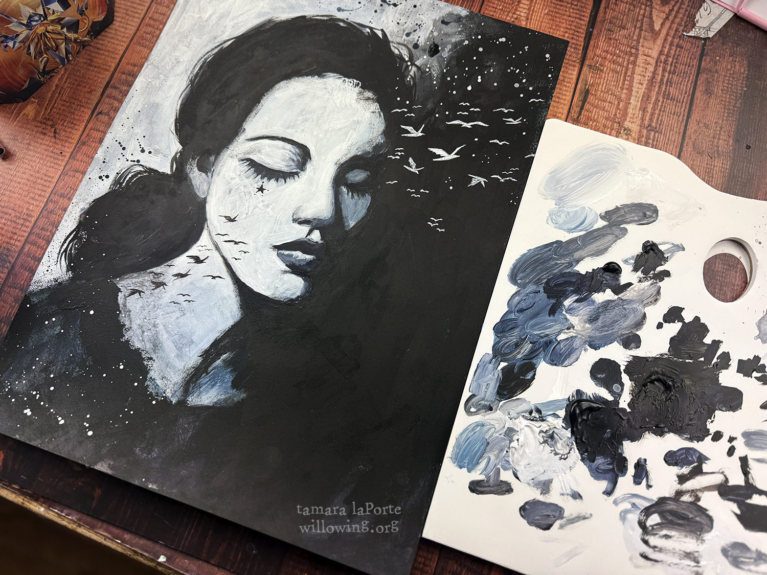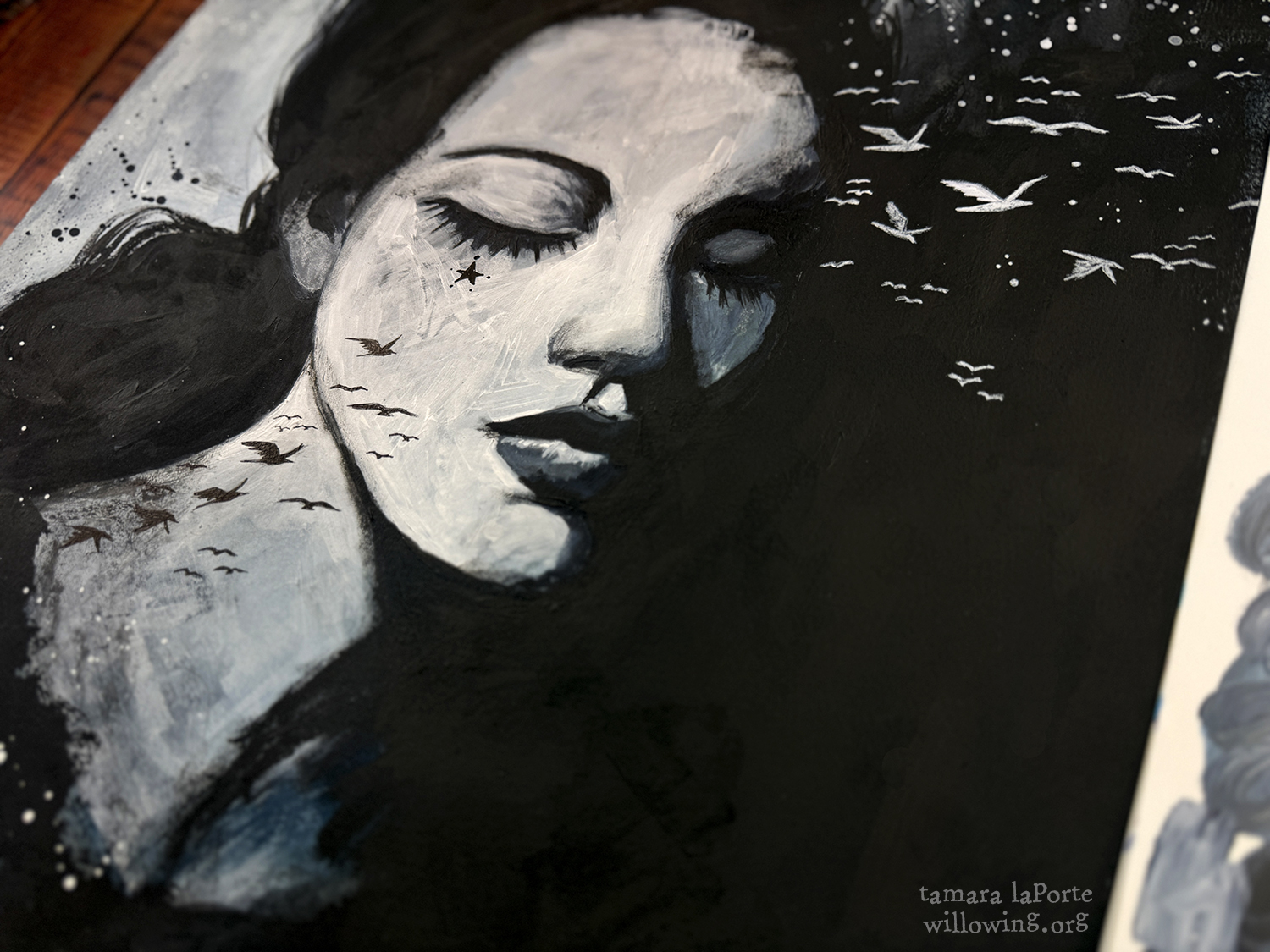 In this class, we’ll create a mystical portrait of a figure bathed in soft light, emerging from deep shadows. We’ll explore chiaroscuro—the art of using strong contrasts between light and dark to create depth, form, and emotion. You’ll learn how to paint a glowing face with a dramatic, shadowed background, and how subtle details like flying birds can add symbolism and mood.