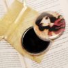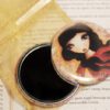They measure 2.25″ (5.5cm) and have a reproduction of my artwork on them. They have a beautiful glossy finish and come with a real glass mirror on the back! ♥