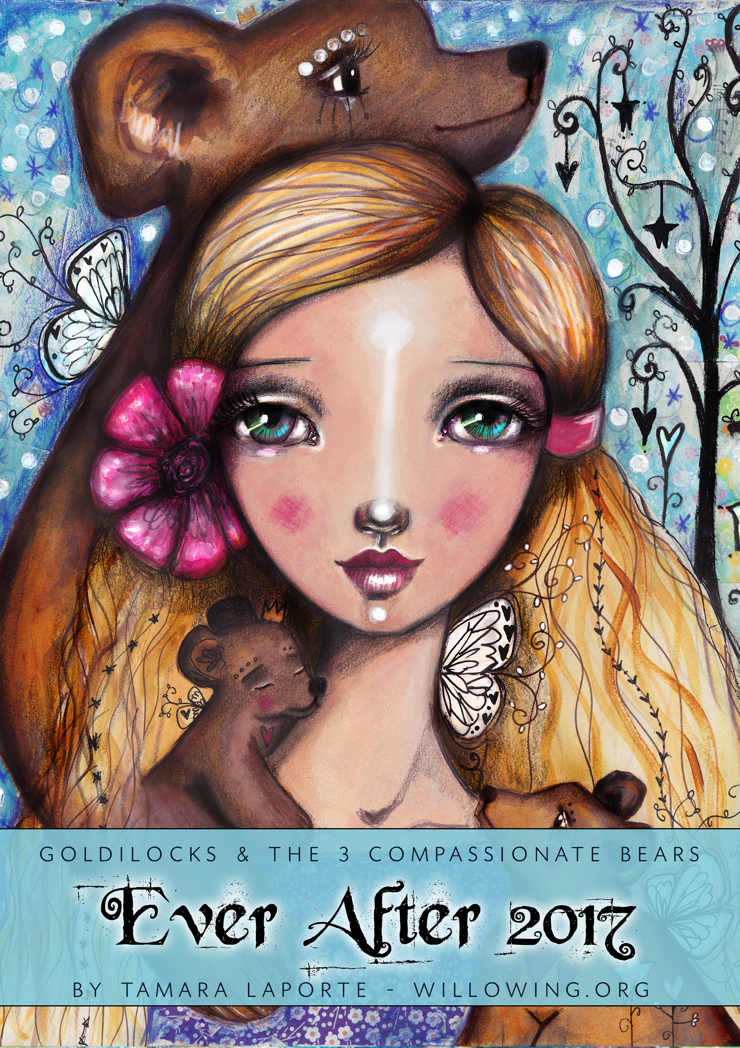 We will create a beautiful portrait of Goldilocks and 3 bears on a mixed media background.