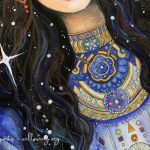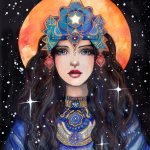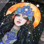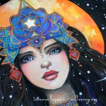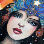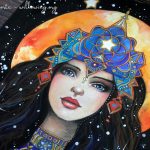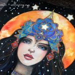 In this lesson, we will create a portrait of a woman at night in front of a bright orange moon. She represents an oracle, or a wise guide of some sorts. She could be representing your higher self, or an external higher being who will guide you through the year. We will include Sacred Geometrical shapes as well to support our goals and aims for the year