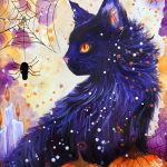 In this lesson, we are going to create a beautiful autumnal/ Halloween painting that contains a beautiful mystical cat surrounded by pumpkins. I mean for this cat to represent our ‘familiar’ which, in some beliefs systems is a concept that stands for an animal that shares a special spiritual connection with a person, acting as a guide or protector. These animals are thought to help enhance one’s intuition, energy and personal wellbeing.