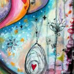What I love about art journalling (as opposed to working on single sheets or on canvas/ wood) is that it’s a playground where the inner critic tends to be a little less loud. It’s a place where you can express your inner world in a way that is playful, messy, joyful, expressive, colourful and there is no pressure to create anything ‘pretty’. The whole point of the journal, to me, is to express yourself in ways that you enjoy allowing for growth, learning and experimentation.