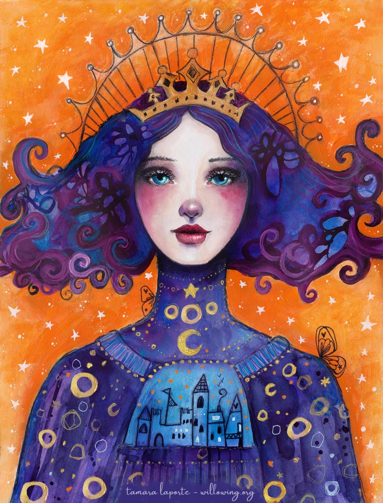 In this lesson, we will paint a regal, whimsical queen who represents the strength and power you can experience when you are fully present to all your experiences (both negative and positive) with compassion and love, when you really accept and embrace all of you. This painting represents us being the ‘queen of our inner kingdoms’ with compassion and love.