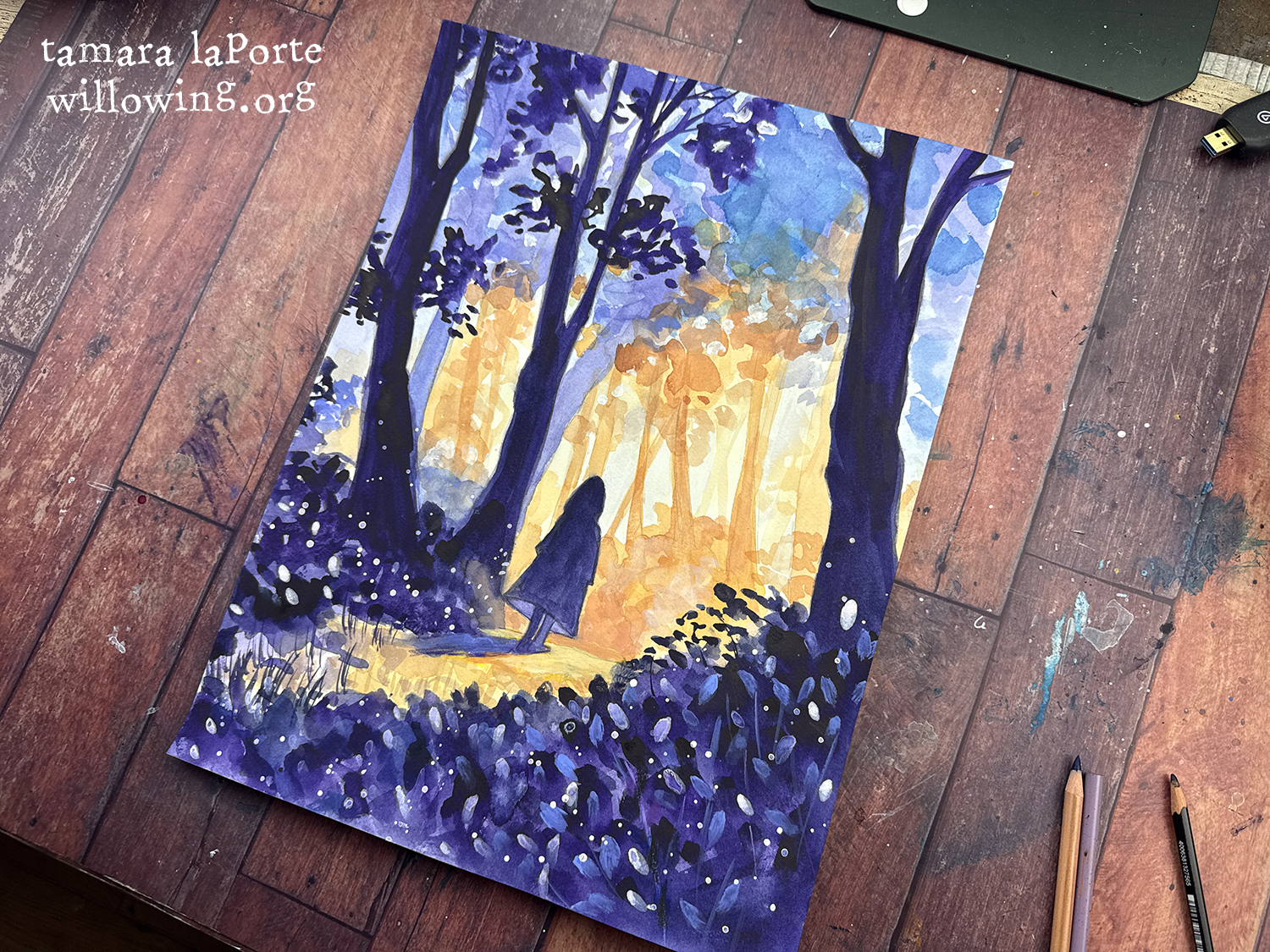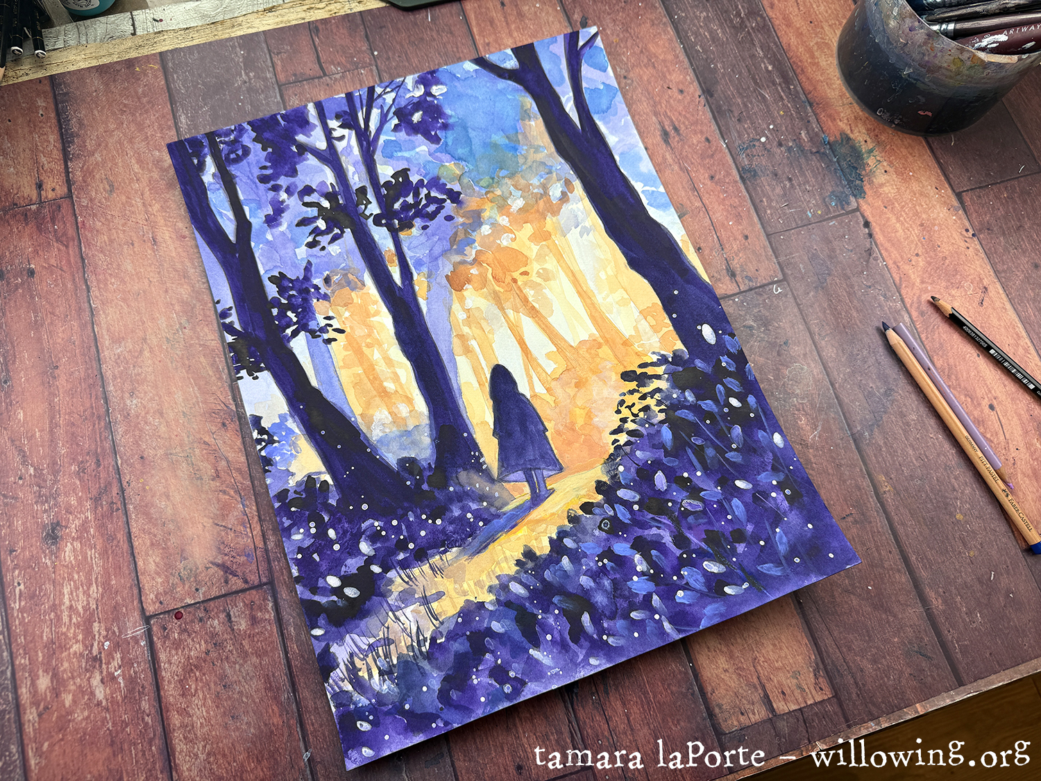 This lesson was first published as part of A Year of Light and is now available as a stand alone class! Come join me, Tam to paint a small figure entering a forest clearing that is filled with light!