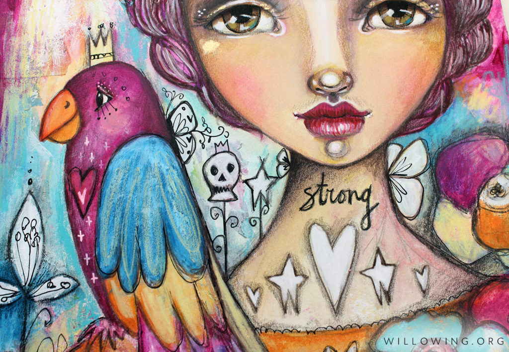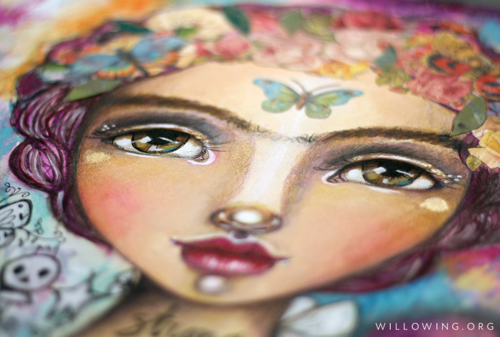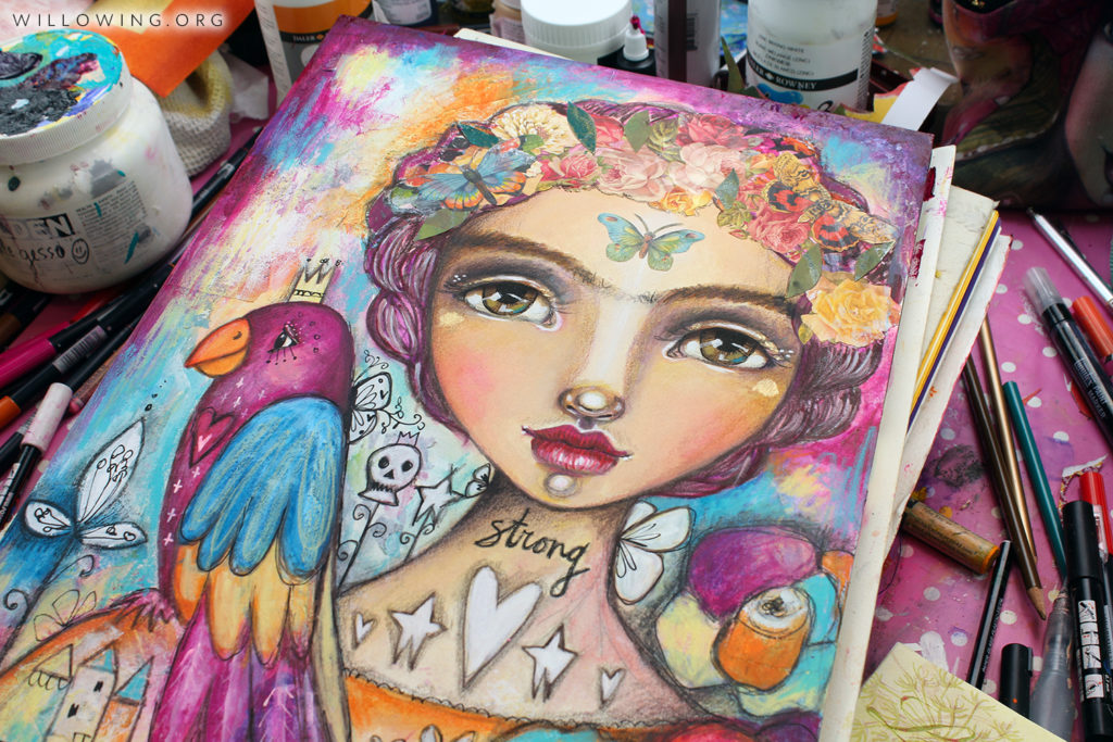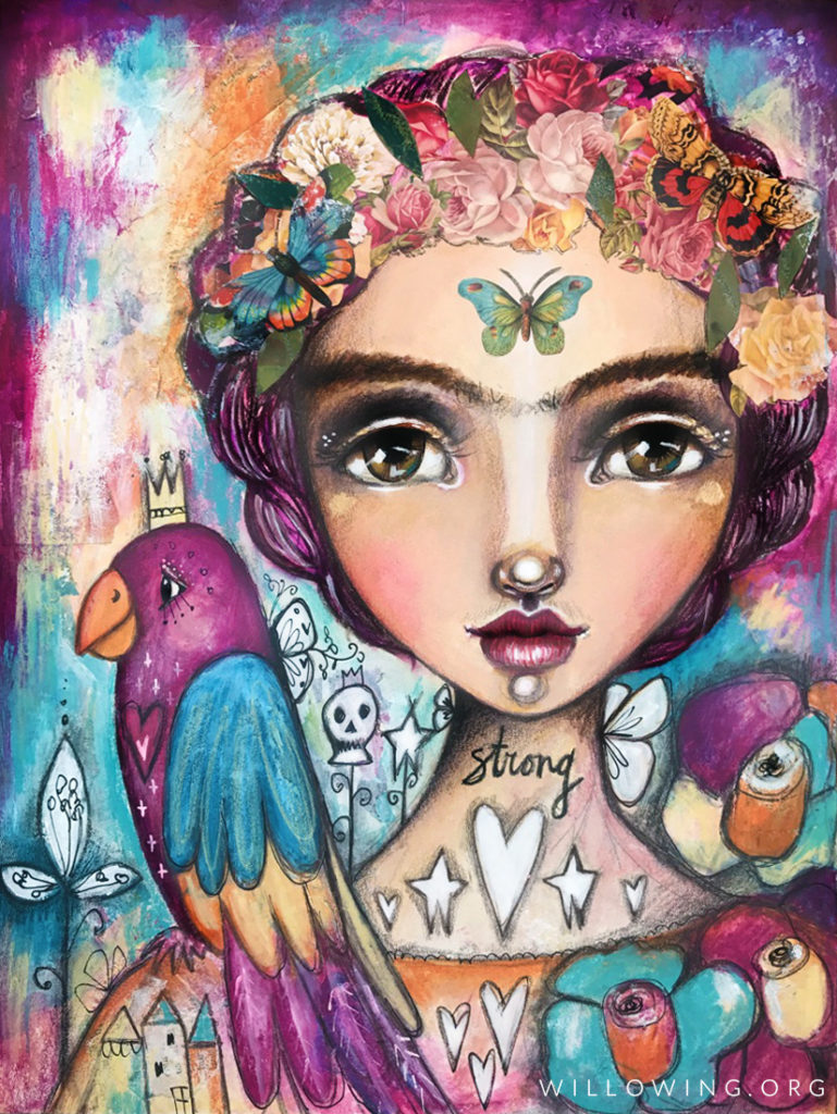 For this week’s Life Book lesson I created a painting inspired by the inspiring Frida Kahlo. My lesson focuses on ‘transforming limiting beliefs into liberating beliefs’ and I find Frida such an amazing example of someone who defied societal expectations and -I assume- she also confronted her internal limiting beliefs looking at how she approached life in the face of her own limitations. I loved working on this painting and getting connected to some ‘Frida energy’. :)